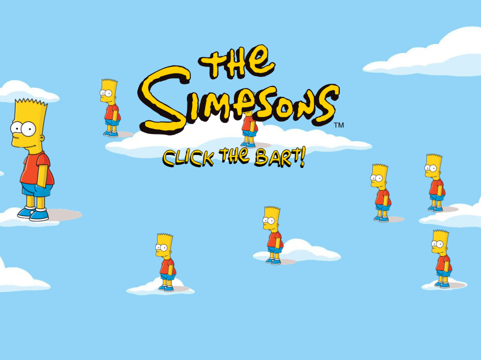This is Click the Bart! A lil game i made in less than an hour where you click... well, Bart! However when you click Bart, He will spawn Bart juniors™ who are smaller than the real bart that you also have to click!